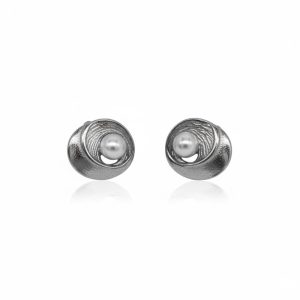 Σκουλαρίκια Ατσάλι Σπειροειδές Σχέδιο με Πέρλα – Ασημί