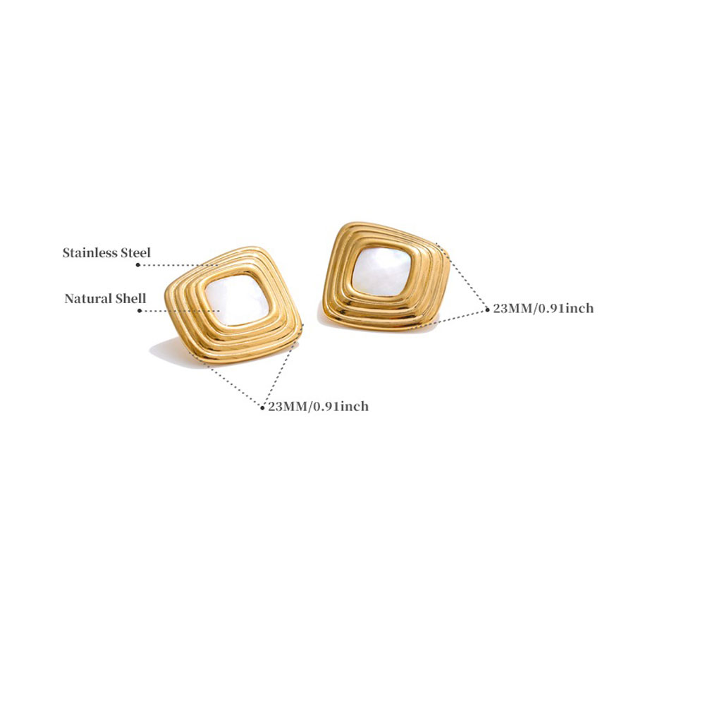 • Ατσάλινα Καρφωτά Γεωμετρικά Σκουλαρίκια με Φυσικό Φίλντισι Χρυσό ΧρώμαA3368-1A
