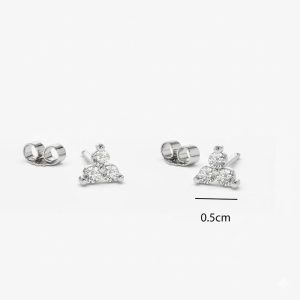 Σκουλαρίκια Ατσάλι Ασημί Μίνι Τριγωνικό Σχέδιο με Στρας