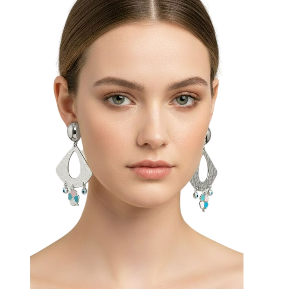 • Ατσάλινα Σκουλαρίκια Κρεμαστά με Μάτια και Χρωματιστό Τριφύλλι Ασημί ΧρώμαX00530B