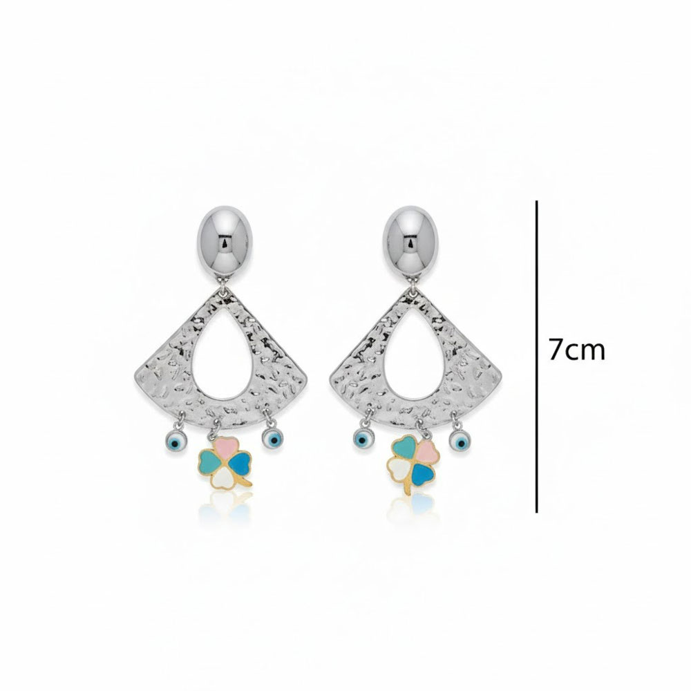 Ατσάλινα Σκουλαρίκια Κρεμαστά με Μάτια και Χρωματιστό Τριφύλλι Ασημί Χρώμα
