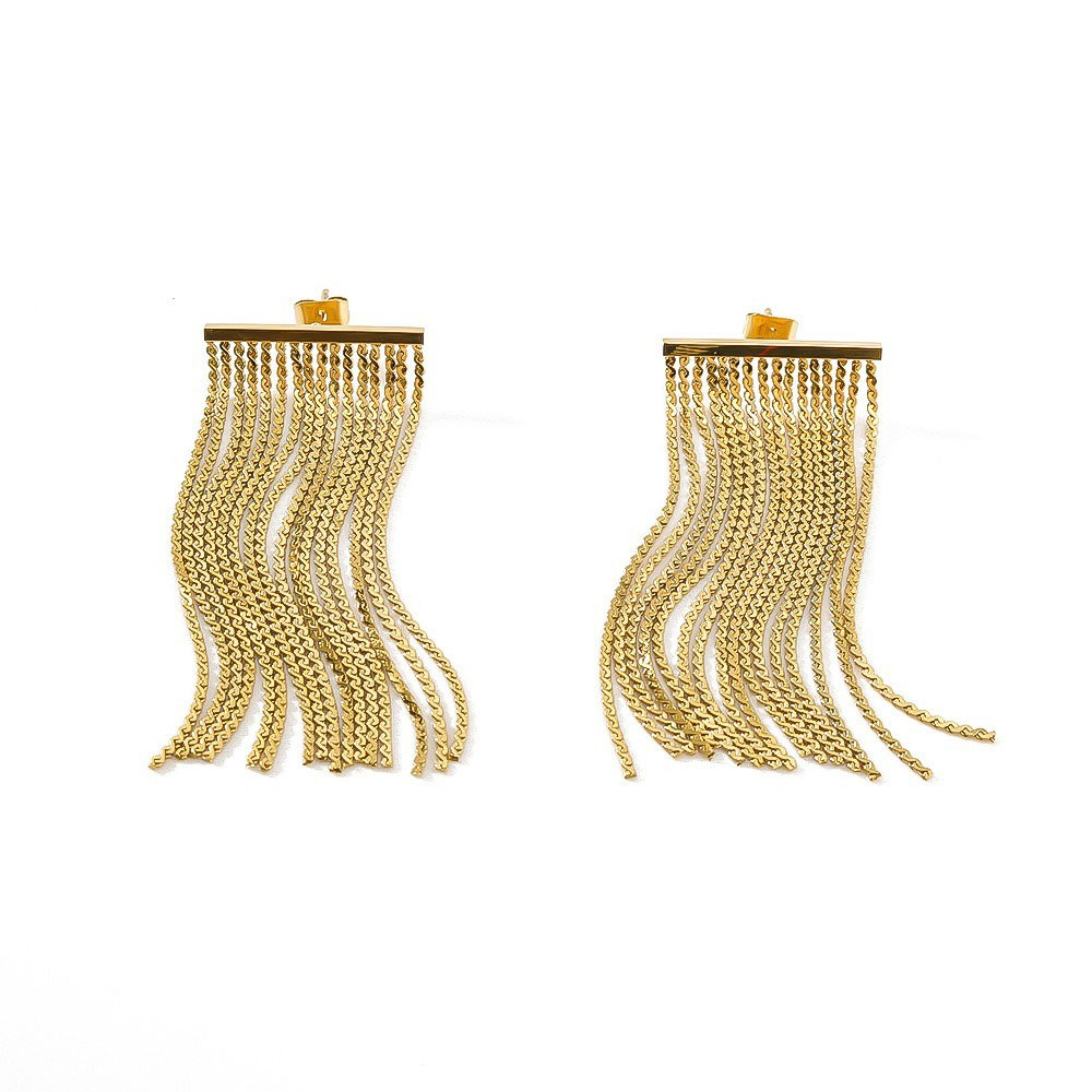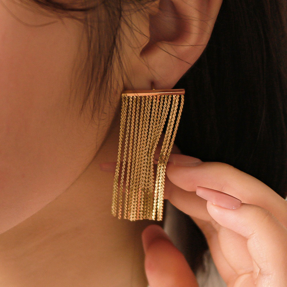 Εντυπωσιακά σκουλαρίκια από ατσάλι, με πολλές λεπτές κρεμαστές αλυσίδες που χαρίζουν εντυπωσιακή κίνηση και ένα κομψό statement αποτέλεσμα. Ο μοντέρνος σχεδιασμός τους τα καθιστά ιδανικά για βραδινές εμφανίσεις, εκδηλώσεις ή για να προσθέσετε λάμψη και στιλ σε ένα minimal σύνολο.Με μήκος περίπου 5 cm, είναι ελαφριά, άνετα στην εφαρμογή και αντιαλλεργικά, προσφέροντας άνεση καθ’ όλη τη διάρκεια της ημέρας. Μια λαμπερή επιλογή για τη συλλογή σας ή ένα ιδιαίτερο δώρο για αγαπημένο πρόσωπο.