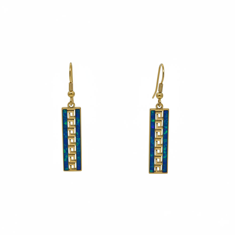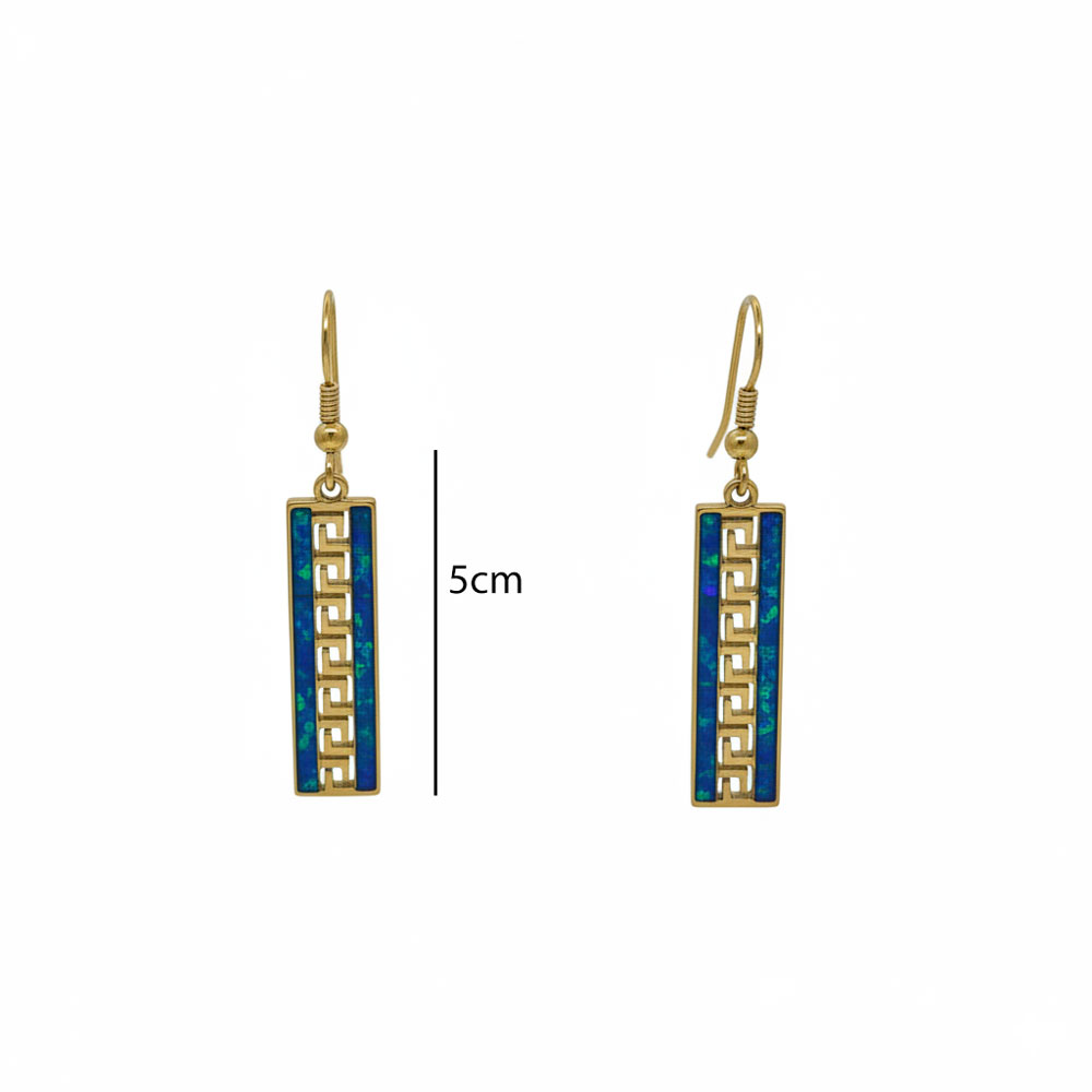 • Σκουλαρίκια Ατσάλι Μακρόστενα με Σχέδιο Μαίανδρο & Μπλε Λεπτομέρειες - ΧρυσόA3074A