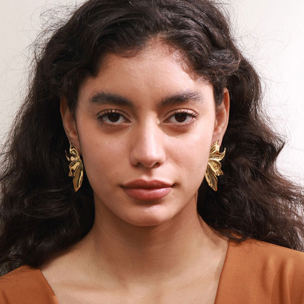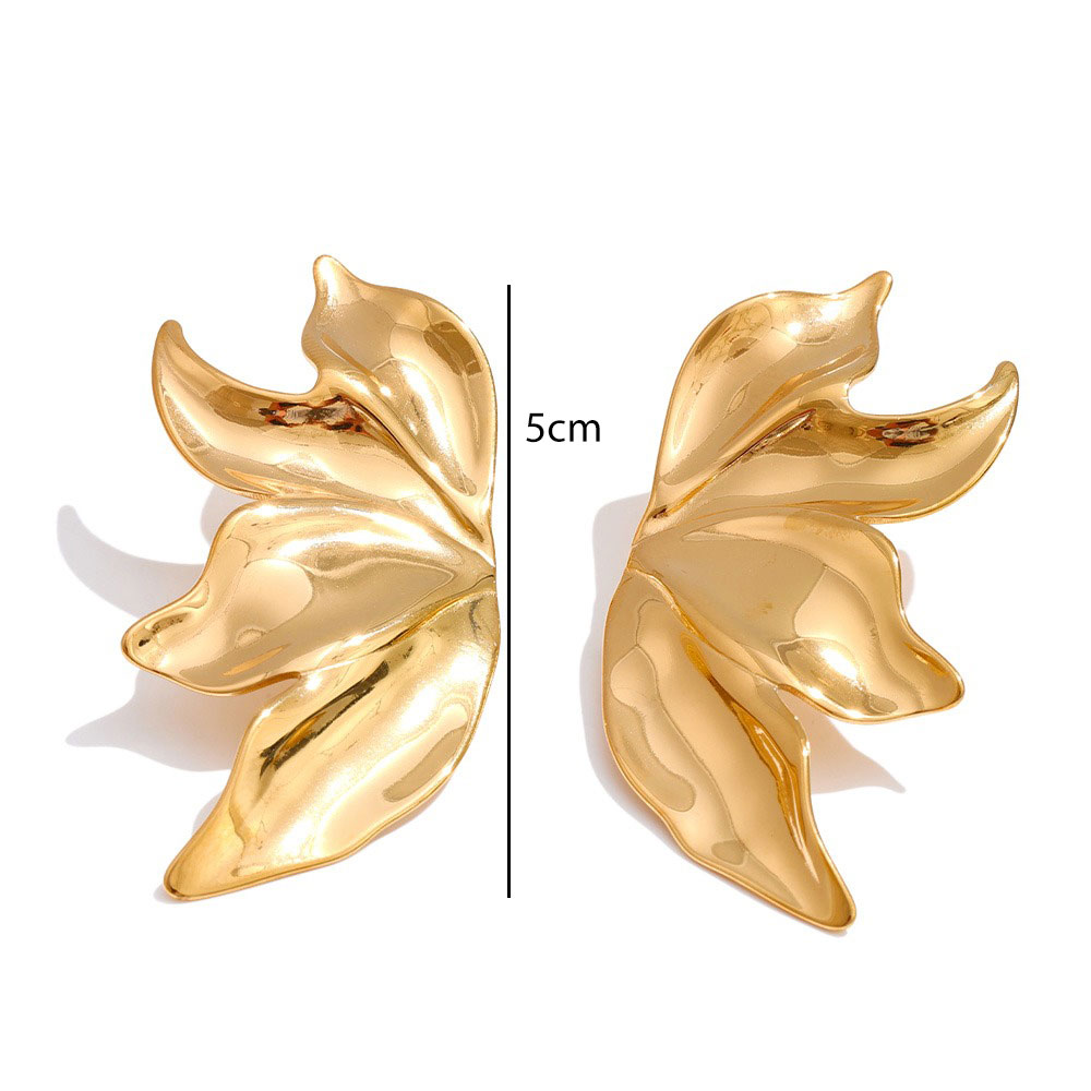 Εντυπωσιακά σκουλαρίκια σε σχέδιο φύλλου από ατσάλι, με ανάγλυτη οργανική μορφή που προσφέρει μοντέρνα και κομψή αισθητική. Η ιδιαίτερη καμπυλωτή τους γραμμή δημιουργεί ένα statement αποτέλεσμα, ιδανικό για όσες αναζητούν ένα ξεχωριστό και εκλεπτυσμένο κόσμημα.Ανθεκτικά και άνετα στη χρήση, αναβαθμίζουν κάθε εμφάνιση με μια σύγχρονη και καλλιτεχνική πινελιά.