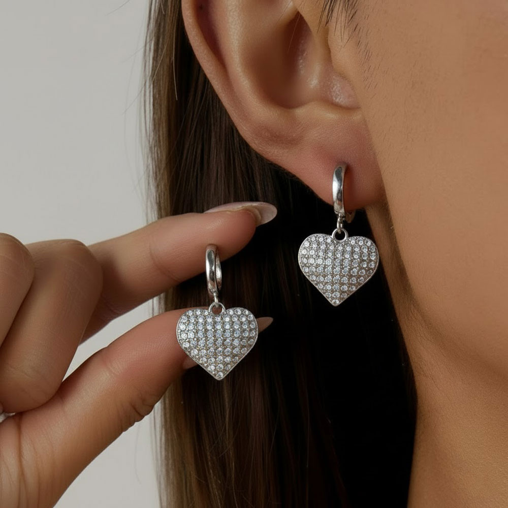 Κομψά σκουλαρίκια από ανοξείδωτο ατσάλι με κρεμαστή καρδιά διακοσμημένη με λαμπερά στρας σε όλη την επιφάνεια. Εντυπωσιακό και θηλυκό σχέδιο που χαρίζει λάμψη σε κάθε εμφάνιση, ιδανικό για καθημερινή χρήση αλλά και για πιο ιδιαίτερες στιγμές. Ανθεκτικά, υποαλλεργικά και άνετα στο αυτί. Μια λαμπερή επιλογή για να ολοκληρώσετε το στυλ σας ή ως δώρο σε ένα αγαπημένο πρόσωπο.