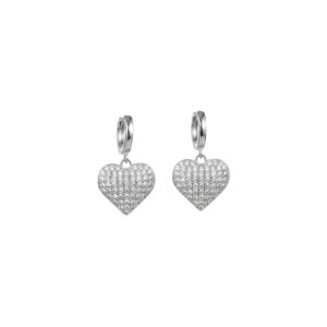 Σκουλαρίκια Ατσάλι Καρδιά με Λαμπερά Στρας Ασημί