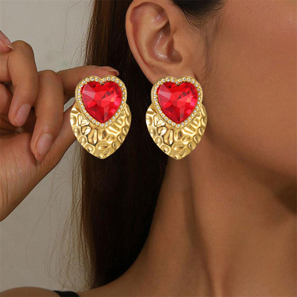 Εντυπωσιακά σκουλαρίκια με σχέδιο καρδιάς και λαμπερή σταγόνα στρας στο κέντρο, που τραβούν αμέσως τα βλέμματα. Η ανάγλυφη μεταλλική βάση προσθέτει ένταση και χαρακτήρα, ενώ ο συνδυασμός με το στρας δίνει μια glamorous πινελιά. Κατασκευασμένα από ανοξείδωτο ατσάλι για αντοχή και άνεση στην καθημερινή χρήση. Ιδανικά για βραδινές εμφανίσεις αλλά και για να απογειώσεις ένα απλό outfit.