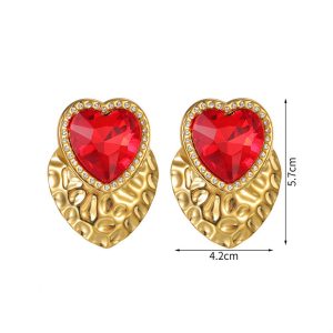 Μεγάλα Ατσάλινα Σκουλαρίκια Κόκκινη Καρδιά σε Χρυσό Στοιχείο
