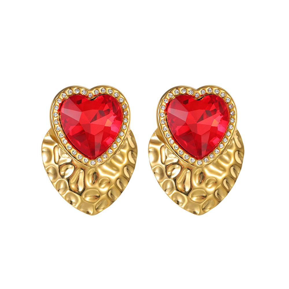 • Μεγάλα Ατσάλινα Σκουλαρίκια Κόκκινη Καρδιά σε Χρυσό ΣτοιχείοX00538-1