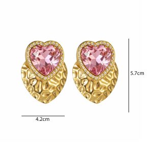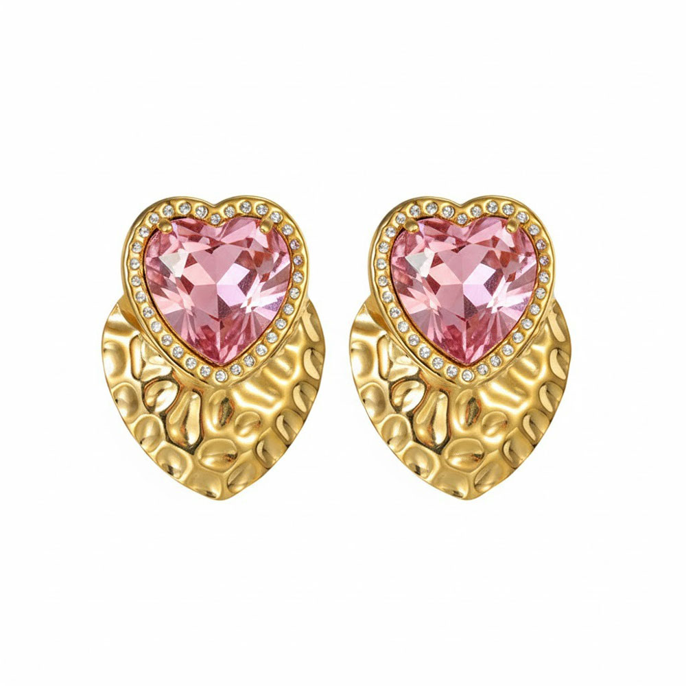 Μεγάλα Ατσάλινα Σκουλαρίκια Ροζ Καρδιά σε Χρυσό Στοιχείο