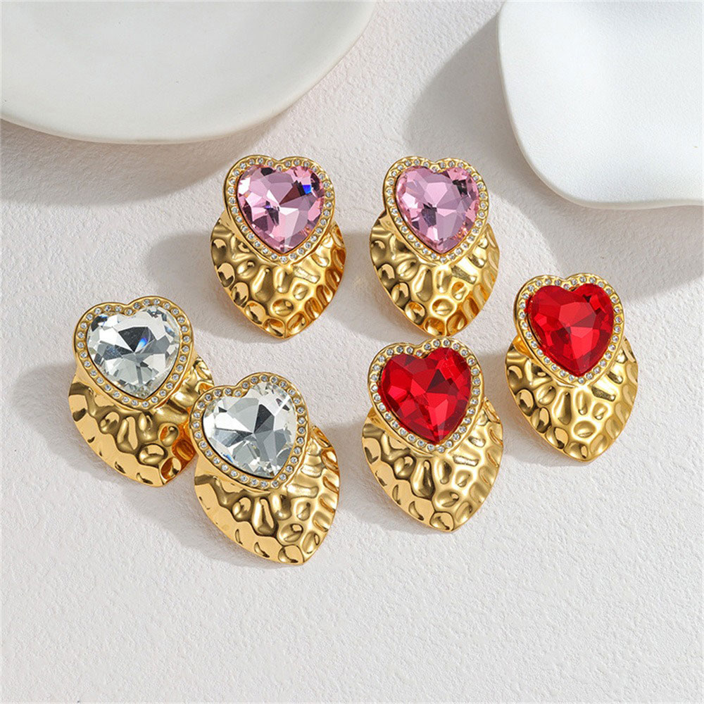 Εντυπωσιακά σκουλαρίκια με σχέδιο καρδιάς και λαμπερή σταγόνα στρας στο κέντρο, που τραβούν αμέσως τα βλέμματα. Η ανάγλυφη μεταλλική βάση προσθέτει ένταση και χαρακτήρα, ενώ ο συνδυασμός με το στρας δίνει μια glamorous πινελιά. Κατασκευασμένα από ανοξείδωτο ατσάλι για αντοχή και άνεση στην καθημερινή χρήση. Ιδανικά για βραδινές εμφανίσεις αλλά και για να απογειώσεις ένα απλό outfit.