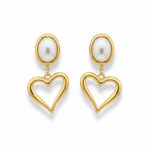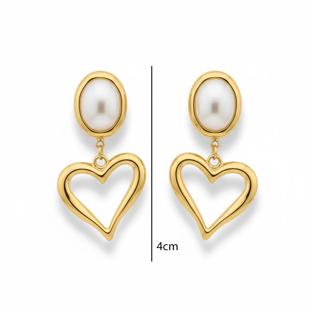 Σκουλαρίκια Ατσάλι Καρδιά με Κρεμαστή Πέτρα Στυλ Πέρλας Χρυσό