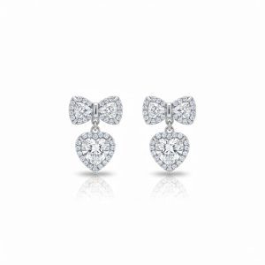 Κομψά σκουλαρίκια από ανοξείδωτο ατσάλι με διακριτικό φιόγκο και κρεμαστό μοτίφ καρδιάς, διακοσμημένα με λαμπερές λεπτομέρειες που προσθέτουν θηλυκότητα και γοητεία. Ιδανικά για elegant εμφανίσεις που θέλουν μια διακριτική αλλά εντυπωσιακή λάμψη.