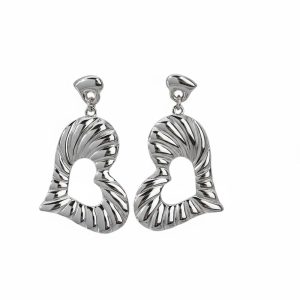 Σκουλαρίκια Καρδιά Σφυρήλατη Κρεμαστά από Ατσάλι Ασημί