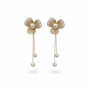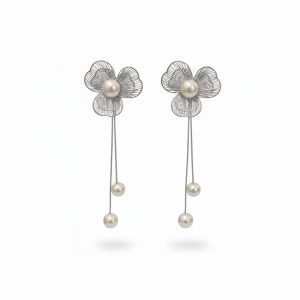 Ανάλαφρα και εντυπωσιακά, αυτά τα ατσάλινα συρμάτινα σκουλαρίκια σε σχήμα λουλουδιού διαθέτουν λεπτεπίλεπτα “πέταλα” από σύρμα και μια κεντρική πέρλα που δίνει κομψότητα στο design. Οι δύο κρεμαστές πέρλες σε λεπτές αλυσίδες προσθέτουν κίνηση και θηλυκή ροή, δημιουργώντας ένα statement αποτέλεσμα χωρίς βάρος. Κατασκευασμένα από ανοξείδωτο ατσάλι, παραμένουν ανθεκτικά και λαμπερά, ιδανικά για elegant εμφανίσεις και ξεχωριστές στιγμές. Διατίθενται σε χρυσό και ασημί.