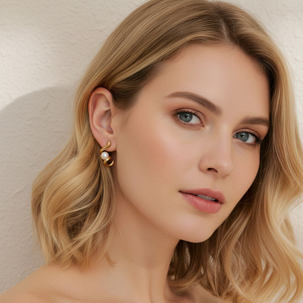 Σκουλαρίκια Από Ανοξείδωτο Ατσάλι με Καμπύλες & Πέρλα – Χρυσό