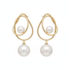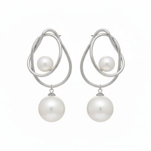 Εντυπωσιακά σκουλαρίκια από ανοξείδωτο ατσάλι με στριφτό, οβάλ σχήμα που παραπέμπει σε φινετσάτη, καμπυλωτή κίνηση. Στο εσωτερικό τους αγκαλιάζουν μία μικρή λευκή πέρλα, ενώ στο τελείωμα κρέμεται μία μεγαλύτερη, προσφέροντας ισορροπία και εκλεπτυσμό. Η καμπυλωτή, «δεμένη» όψη του μετάλλου δημιουργεί ένα δυναμικό αλλά ταυτόχρονα elegant αποτέλεσμα, ιδανικό για ιδιαίτερες εμφανίσεις. Ελαφριά και άνετα, προσθέτουν μια σύγχρονη, statement πινελιά σε κάθε look.