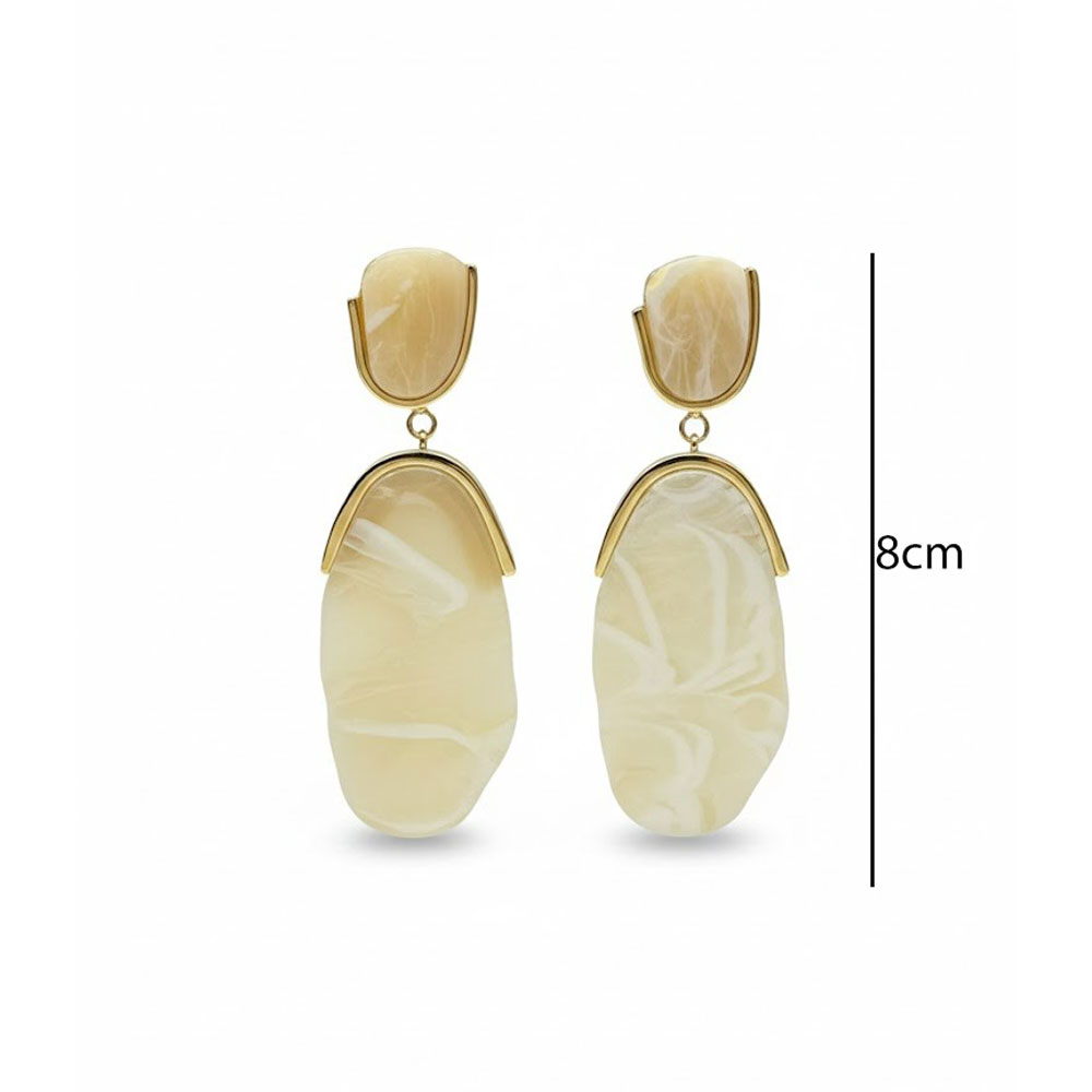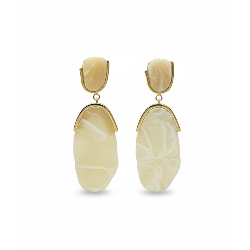 • Μακριά σκουλαρίκια με μαρμάρινη όψη και μοντέρνο σχεδιασμό Χρώμα Χρυσό με Σαμπανί ΤόνουςA3406-1