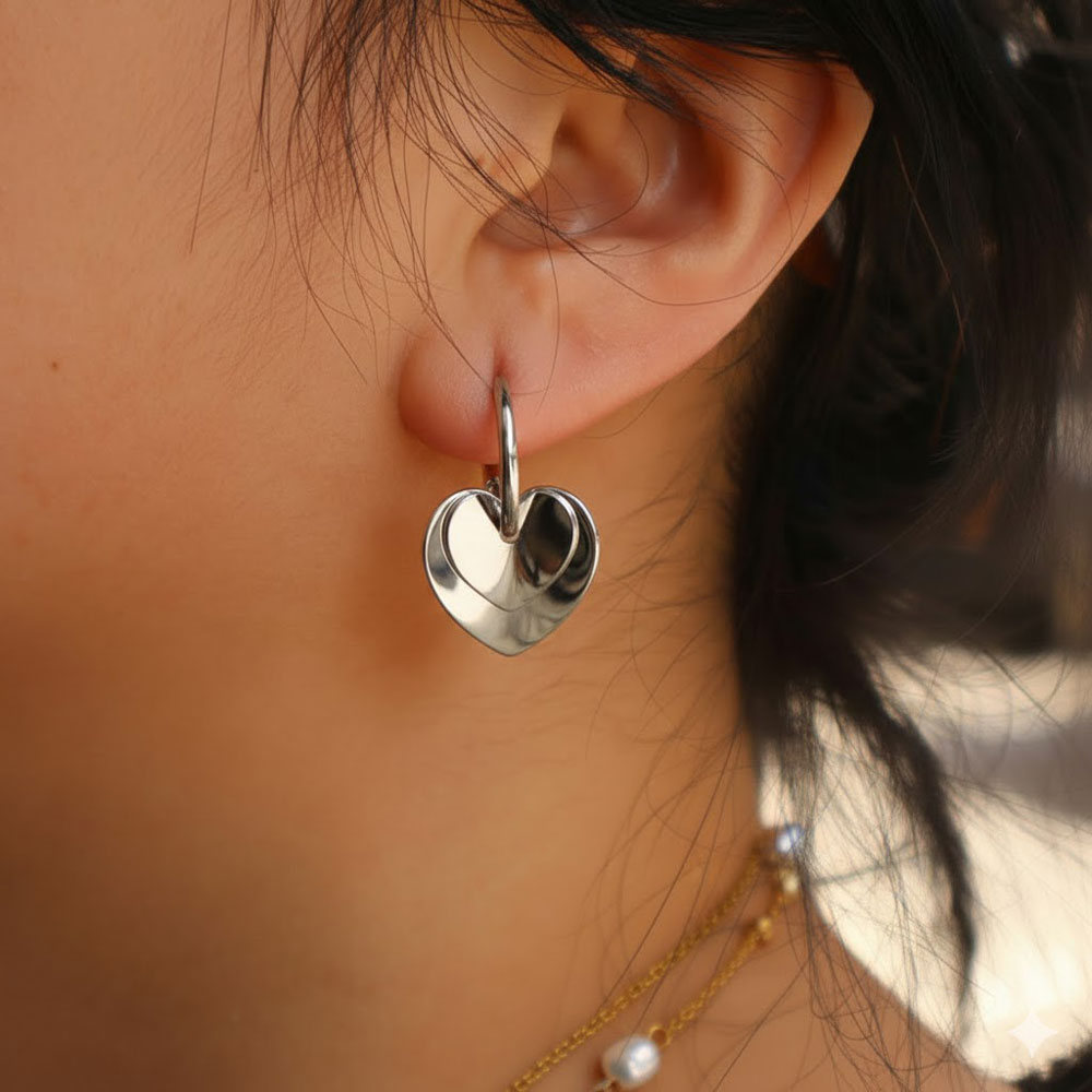 Εντυπωσιακά σκουλαρίκια από ανοξείδωτο ατσάλι με κρίκο και διπλή κρεμαστή καρδιά σε τρισδιάστατο σχέδιο που χαρίζει όγκο και λάμψη. Μοντέρνα αλλά και διαχρονικά, αποτελούν ιδανική επιλογή για να αναβαθμίσεις κάθε εμφάνιση — από την καθημερινότητα έως τις πιο κομψές περιστάσεις. Ανθεκτικά, υποαλλεργικά και άνετα στη χρήση. Χαρακτηριστικά: Υλικό: Ανοξείδωτο Ατσάλι Σχέδιο: Διπλή καρδιά Μήκος: περίπου 3 cm Κλείσιμο: Κρίκος Υποαλλεργικά & ανθεκτικά στο νερό