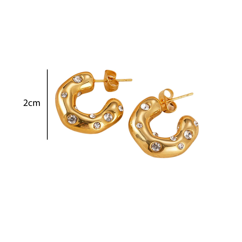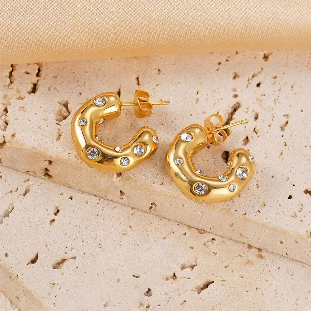 Μοντέρνα σκουλαρίκια από ανοξείδωτο ατσάλι με κυματιστή φόρμα και διακοσμητικά strass που προσθέτουν λάμψη και ξεχωριστό χαρακτήρα. Ένα statement σχέδιο που αναδεικνύει κάθε εμφάνιση με elegant και fashion-forward διάθεση.