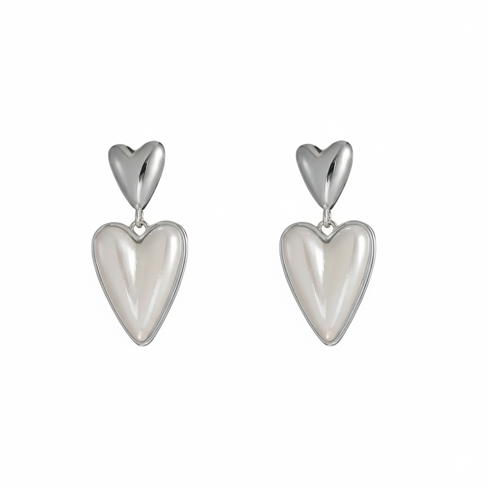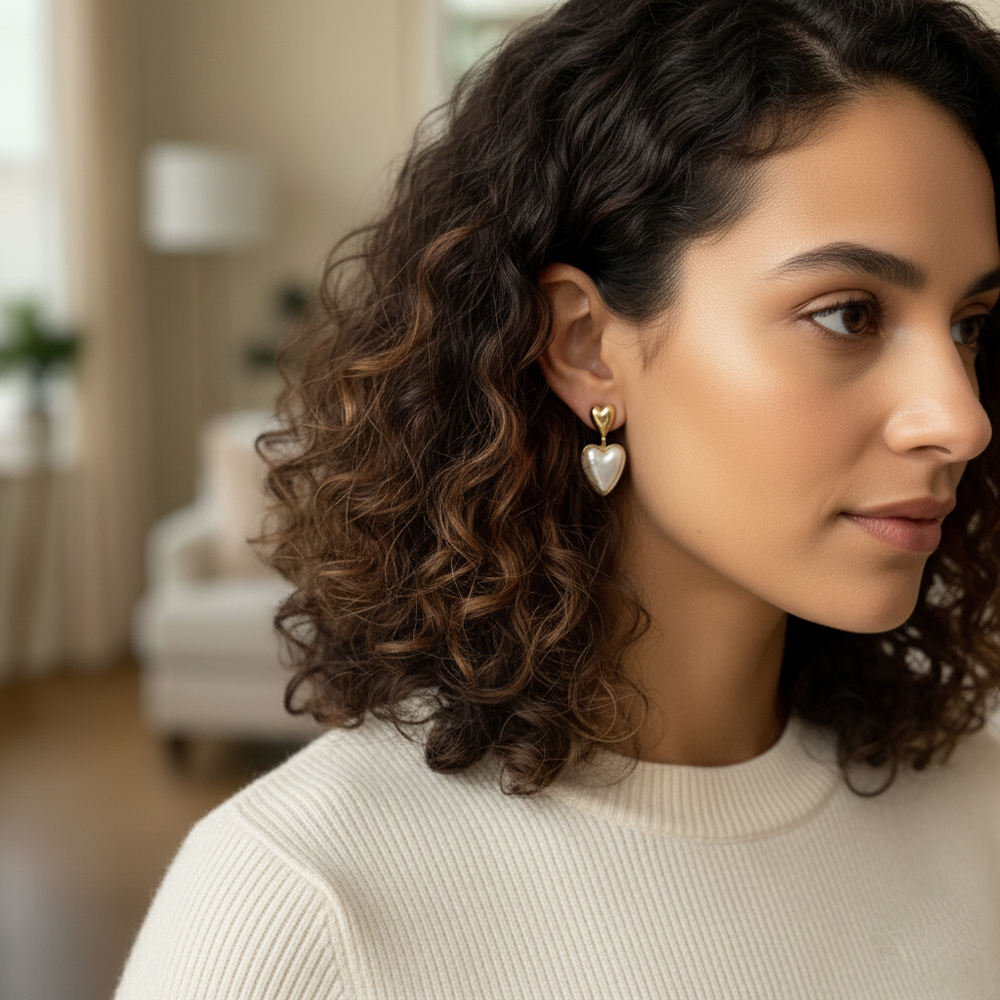Ρομαντικά σκουλαρίκια από ανοξείδωτο ατσάλι σε σχέδιο καρδιάς, διακοσμημένα με λαμπερές πέτρες σε περλέ απόχρωση. Ο συνδυασμός του χρυσού μετάλλου με τη διακριτική λάμψη της πέτρας δημιουργεί ένα εκλεπτυσμένο και θηλυκό αποτέλεσμα. Ιδανικά για να ολοκληρώσουν κάθε εμφάνιση με στυλ και κομψότητα. Ανθεκτικά, υποαλλεργικά και διαχρονικά.