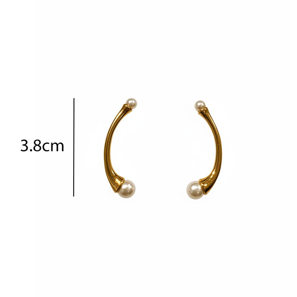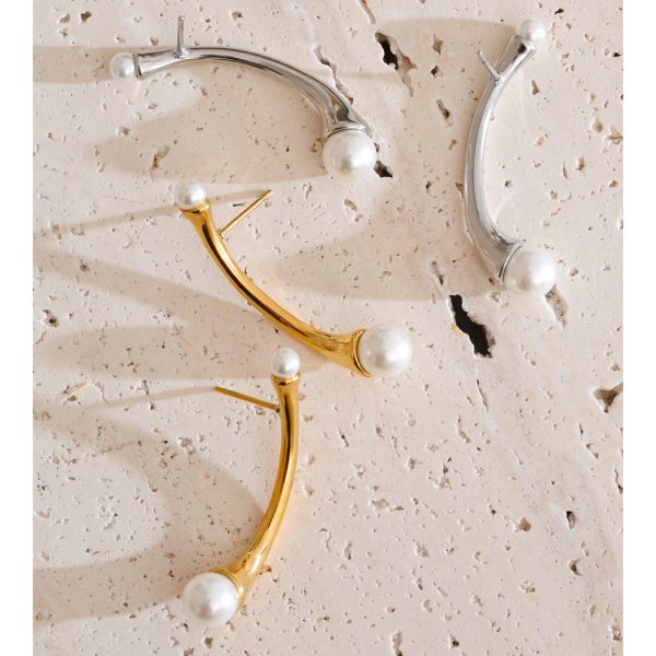 Κομψά ατσάλινα σκουλαρίκια με μοντέρνο κυρτό σχέδιο και διακριτικές πέρλες στις άκρες. Διαθέσιμα σε χρυσό και ασημί χρώμα, προσθέτουν μια διαχρονική πινελιά πολυτέλειας σε κάθε εμφάνιση. Ιδανικά για καθημερινή χρήση αλλά και για πιο ιδιαίτερες περιστάσεις, χάρη στη minimal και ταυτόχρονα εκλεπτυσμένη αισθητική τους.✨ Υλικό: Ανοξείδωτο ατσάλι✨ Διαθέσιμα χρώματα: Χρυσό / Ασημί✨ Υποαλλεργικά & ανθεκτικά στη φθορά