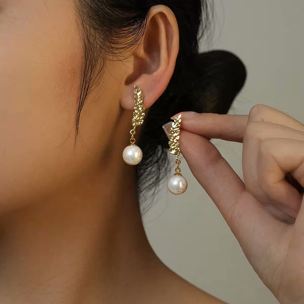 Εντυπωσιακά σκουλαρίκια από ανοξείδωτο ατσάλι, διακοσμημένα με λεπτομέρειες φύλλων και κρεμαστή πέρλα στο τελείωμα. Το elegant σχέδιo συνδυάζει φυσική έμπνευση και κλασική φινέτσα, κάνοντάς τα ιδανικά τόσο για καθημερινό όσο και για βραδινό στιλ. Ελαφριά και άνετα στο αυτί, προσθέτουν μια κομψή, ρομαντική πινελιά σε κάθε εμφάνιση.