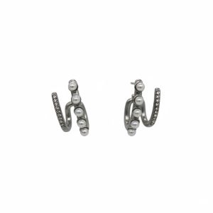 Κομψά σκουλαρίκια από ανοξείδωτο ατσάλι με μοντέρνο, καμπυλωτό σχέδιο που αγκαλιάζει διακριτικά το αυτί. Διακοσμημένα με λευκές πέρλες και λαμπερά κρύσταλλα, προσφέρουν εκλεπτυσμένη λάμψη και θηλυκό χαρακτήρα. Ελαφριά και άνετα στην εφαρμογή, συνδυάζονται ιδανικά με minimal ή πιο εντυπωσιακά σύνολα, προσθέτοντας elegant πινελιά σε καθημερινές και βραδινές εμφανίσεις.