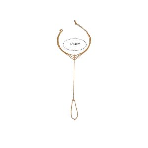 Εντυπωσιακό βραχιόλι δαχτυλίδι από ανοξείδωτο ατσάλι με τριπλή αλυσίδα στον καρπό που καταλήγει σε λεπτή αλυσίδα προς το δάχτυλο. Ο κομψός σχεδιασμός του συνδυάζει minimal ύφος με μοντέρνα αισθητική, ιδανικό για να ολοκληρώσει κάθε εμφάνιση με ιδιαίτερο στυλ.