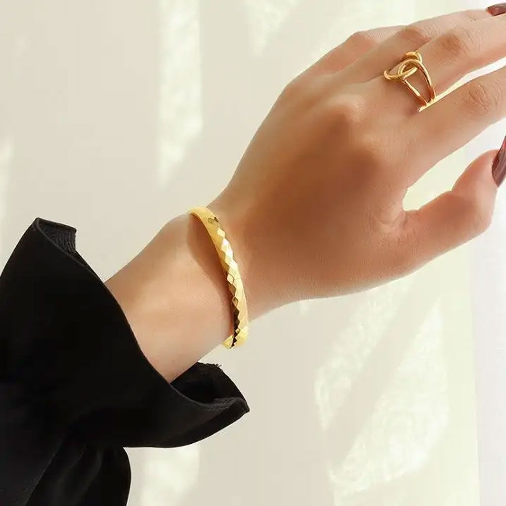 Ατσάλινη Χειροπέδα Με Ανάγλυφο Σχήμα – Χρυσό