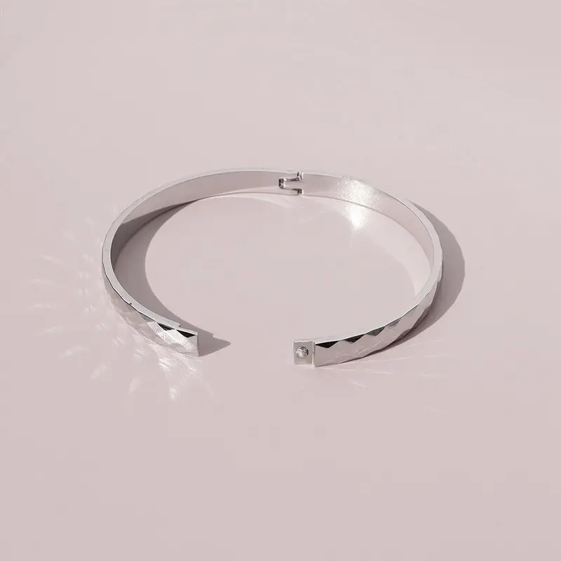 Γυναικείο βραχιόλι χειροπέδα, φτιαγμένο από ανοξείδωτο ατσάλι άριστης ποιότητας. Μπορεί να συνδυαστεί εύκολα με όλα σου τα κοσμήματα και είναι ιδανική επιλογή σε οποιαδήποτε έξοδό σου. Διάμετρος: 6,2 εκ.