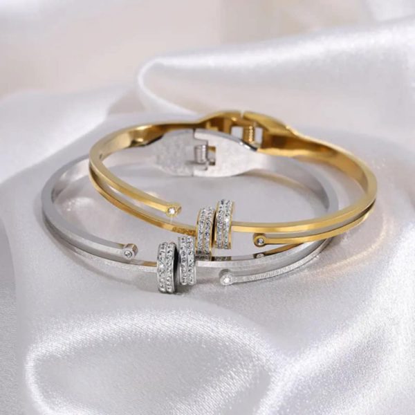 Γυναικείο βραχιόλι χειροπέδα, φτιαγμένο από ανοξείδωτο ατσάλι άριστης ποιότητας. Μπορεί να συνδυαστεί εύκολα με όλα σου τα κοσμήματα και είναι ιδανική επιλογή σε οποιαδήποτε έξοδό σου.