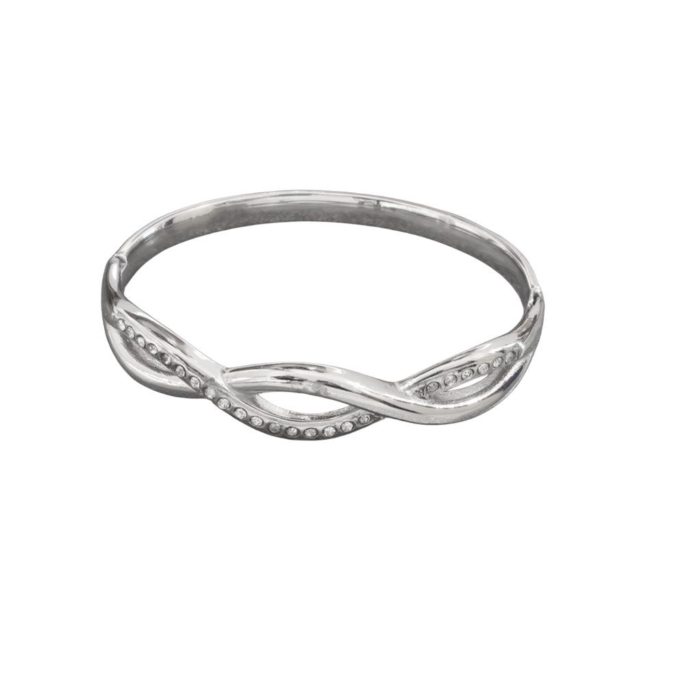Ατσάλινη Χειροπέδα Βέργα Με Πλέξη Και Πέτρες Ζιργκόν – Ασημί