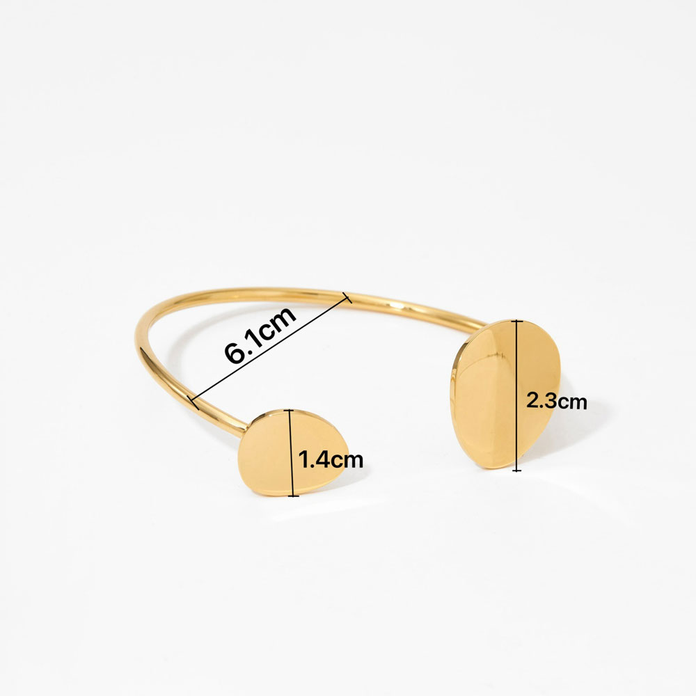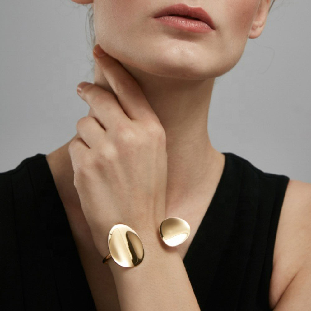 Εντυπωσιακό βραχιόλι από ανοξείδωτο ατσάλι με ασύμμετρα, λεία μεταλλικά στοιχεία που δημιουργούν ένα μοντέρνο και καλλιτεχνικό αποτέλεσμα. Ο ανοιχτός σχεδιασμός του προσφέρει άνετη εφαρμογή στον καρπό, ενώ η γυαλιστερή  επιφάνεια χαρίζει διακριτική πολυτέλεια και statement χαρακτήρα. Ιδανικό για minimal αλλά και elegant εμφανίσεις, φοριέται μόνο του ή συνδυάζεται εύκολα με άλλα κοσμήματα για ένα σύγχρονο look.