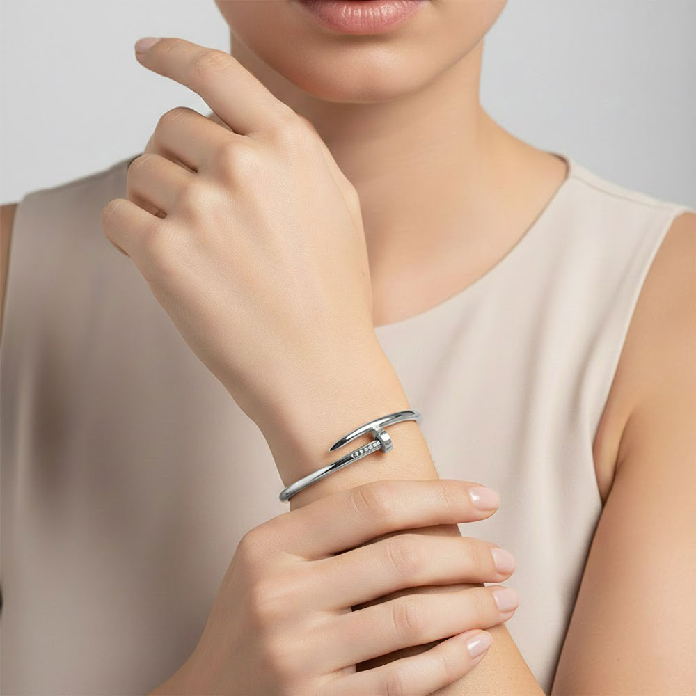 Minimal βραχιόλι από ανοξείδωτο ατσάλι, με μοντέρνο σχεδιασμό εμπνευσμένο από τη μορφή καρφιού που προσδίδει δυναμικό και σύγχρονο χαρακτήρα. Ο λιτός αλλά statement σχεδιασμός του το καθιστά ιδανική επιλογή για καθημερινή χρήση αλλά και για πιο κομψές εμφανίσεις. Ανθεκτικό, άνετο στην εφαρμογή και εύκολο στον συνδυασμό, αποτελεί ένα διαχρονικό κόσμημα που συμπληρώνει κάθε στυλ.