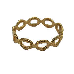 Εντυπωσιακό βραχιόλι με μοναδικό σχέδιο από συνδεδεμένους κρίκους, που θυμίζουν ανάγλυφη πλέξη. Κατασκευασμένο από ανοξείδωτο ατσάλι, προσφέρει ανθεκτικότητα και λαμπερή εμφάνιση. Το ιδιαίτερο textured φινίρισμα χαρίζει κομψότητα και κάνει το κόσμημα ιδανικό για καθημερινή χρήση ή πιο εκλεπτυσμένες εμφανίσεις.