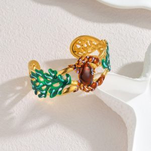 Ατσάλινη Χειροπέδα Καβούρι Χρώμα Χρυσό με Καφέ Πράσινο