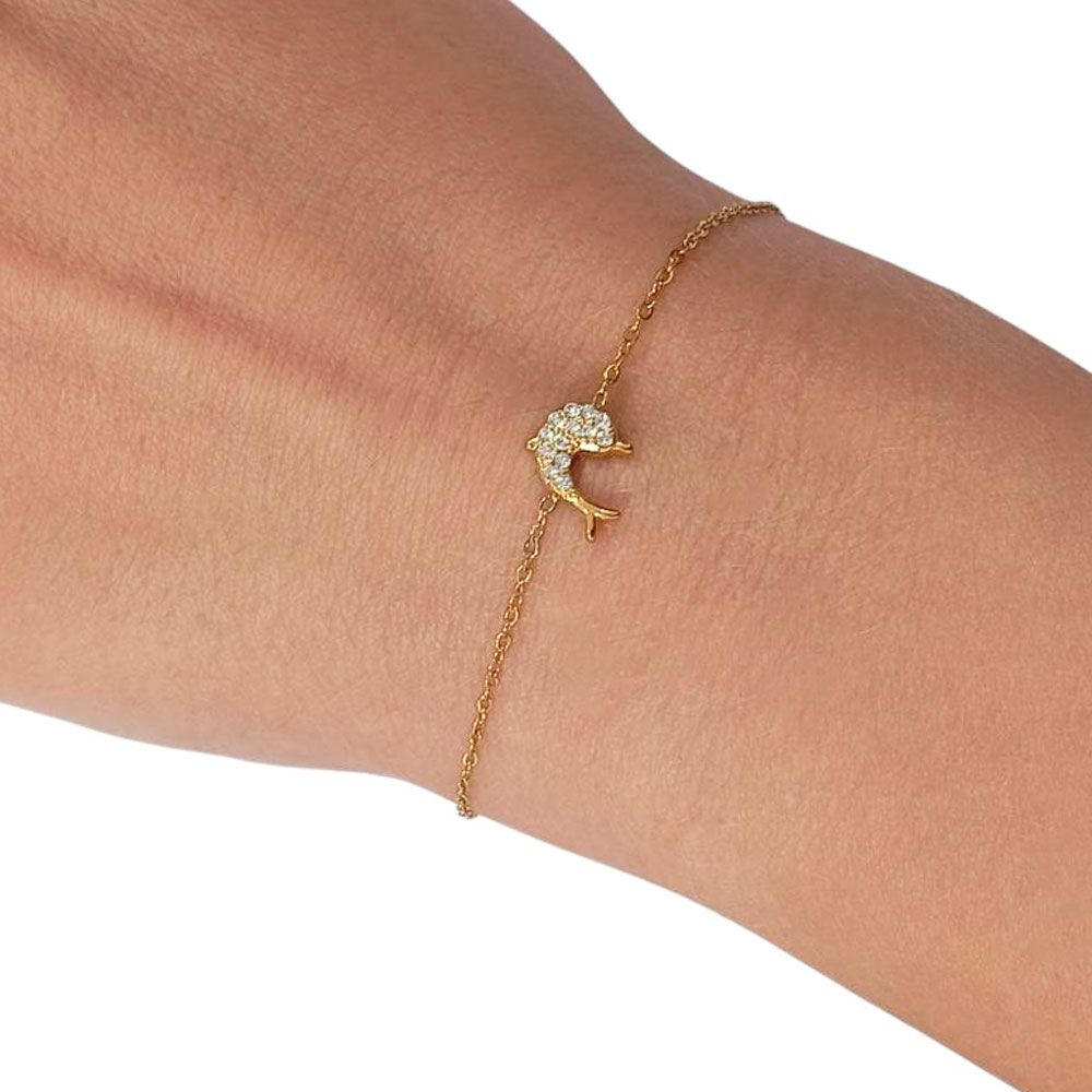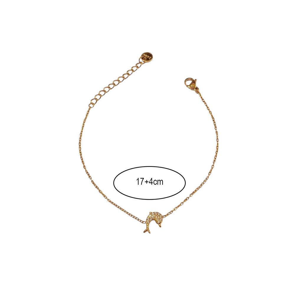 Βραχιόλι Ανοξείδωτο Ατσάλι με Δελφίνι και Ζιρκόν - Χρυσό008857a