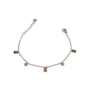 Χαριτωμένο βραχιόλι με μενταγιόν σε σχήμα αρκουδάκι και λαμπερά στρασάκια που κρέμονται διακριτικά κατά μήκος της αλυσίδας. Ιδανικό για να προσθέσει παιχνιδιάρικη και κομψή πινελιά στην εμφάνισή σας. Διαθέσιμο σε επίχρυση και ασημί απόχρωση. Κατασκευασμένο από ανοξείδωτο ατσάλι, δεν μαυρίζει.