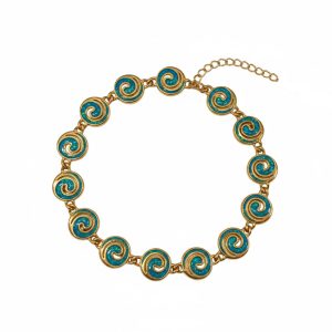 Εντυπωσιακό βραχιόλι τύπου riviera από ανοξείδωτο ατσάλι, διακοσμημένο με κυκλικά μοτίβα σπείρας σε ιδιαίτερη αισθητική εμπνευσμένη από το blue opal. Το συνεχές σχέδιο δημιουργεί μια κομψή γραμμή γύρω από τον καρπό, προσδίδοντας μοναδικό χαρακτήρα και καλοκαιρινό ύφος στο look. Διαθέτει αλυσίδα προέκτασης για άνετη και εύκολη εφαρμογή, ενώ η ανθεκτική και υποαλλεργική κατασκευή το καθιστά ιδανικό για καθημερινή χρήση αλλά και πιο προσεγμένες εμφανίσεις.