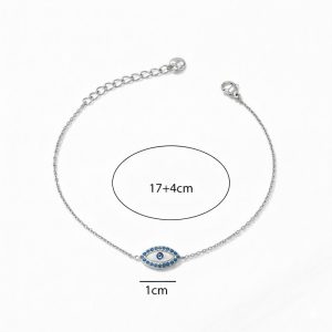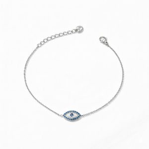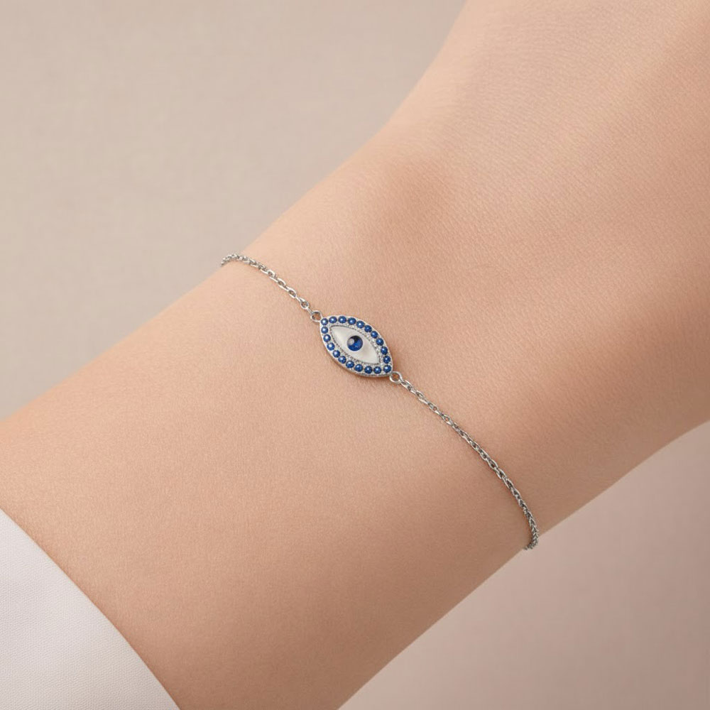Βραχιόλι Ματάκι από Ατσάλι με Μπλε Στρας Ασημί Χρώμα