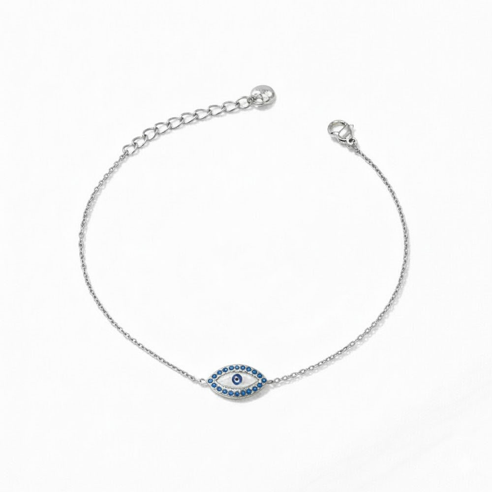 Κομψό βραχιόλι από ανοξείδωτο ατσάλι με σχέδιο ματάκι, διακοσμημένο με λαμπερά στρας. Διακριτικό αλλά εντυπωσιακό, φοριέται άνετα καθημερινά και συνδυάζεται εύκολα με κάθε στυλ. Διαθέτει ρυθμιζόμενο μήκος για τέλεια εφαρμογή και αποτελεί ιδανική επιλογή τόσο για εσένα όσο και για δώρο.
