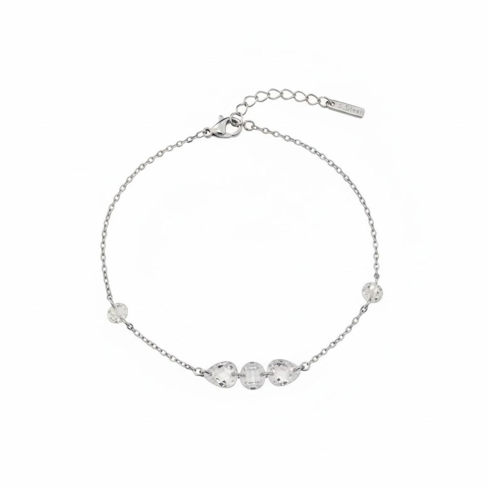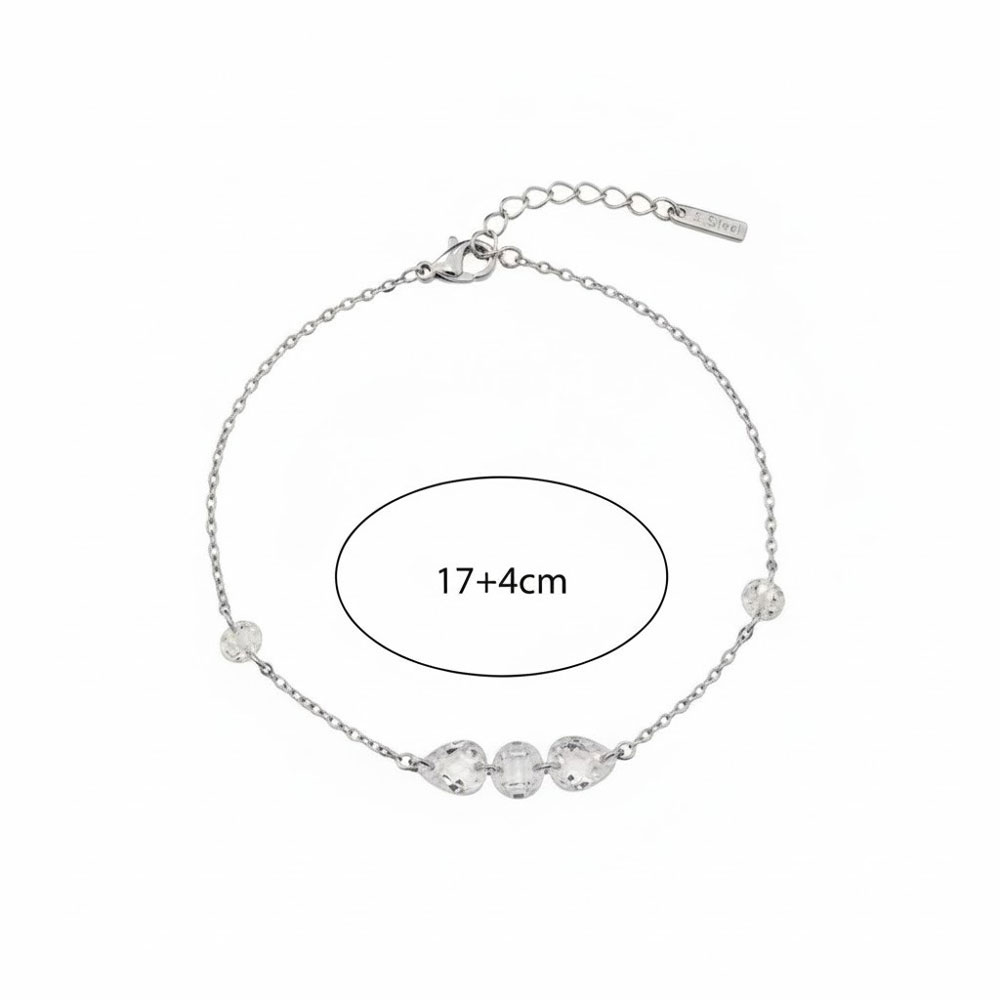 Κομψό βραχιόλι από ανοξείδωτο ατσάλι με λεπτή αλυσίδα και διακριτικές κρυστάλλινες χάντρες που προσθέτουν φωτεινή λάμψη στον καρπό. Ο minimal σχεδιασμός του το καθιστά ιδανικό για καθημερινή χρήση, ενώ η διαχρονική αισθητική του επιτρέπει εύκολο συνδυασμό με άλλα κοσμήματα. Διαθέτει ρυθμιζόμενο μήκος για άνετη εφαρμογή και σταθερό κούμπωμα, προσφέροντας κομψότητα και πρακτικότητα σε κάθε εμφάνιση.