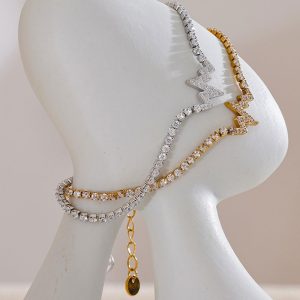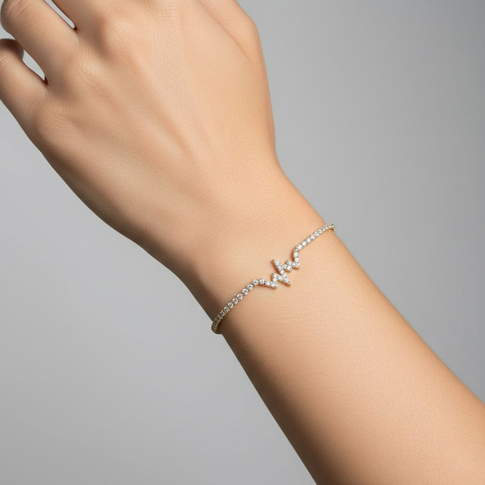 Λεπτό και κομψό βραχιόλι από ανοξείδωτο ατσάλι, διακοσμημένο με λαμπερά στρας σε σχέδιο καρδιογραφήματος. Ένα διακριτικό αλλά εντυπωσιακό κόσμημα που συμβολίζει τον ρυθμό της καρδιάς και δίνει λάμψη σε κάθε καθημερινό ή βραδινό look.