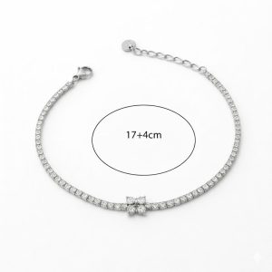 Κομψό ατσάλινο βραχιόλι με σειρά από λαμπερά στρας και διακριτικό κεντρικό στοιχείο που προσθέτει λάμψη χωρίς υπερβολή. Διαθέτει προέκταση για άνετη και προσαρμόσιμη εφαρμογή στον καρπό. Ιδανικό για καθημερινή χρήση αλλά και για πιο ιδιαίτερες εμφανίσεις, φοριέται εύκολα μόνο του ή σε layering με άλλα βραχιόλια.