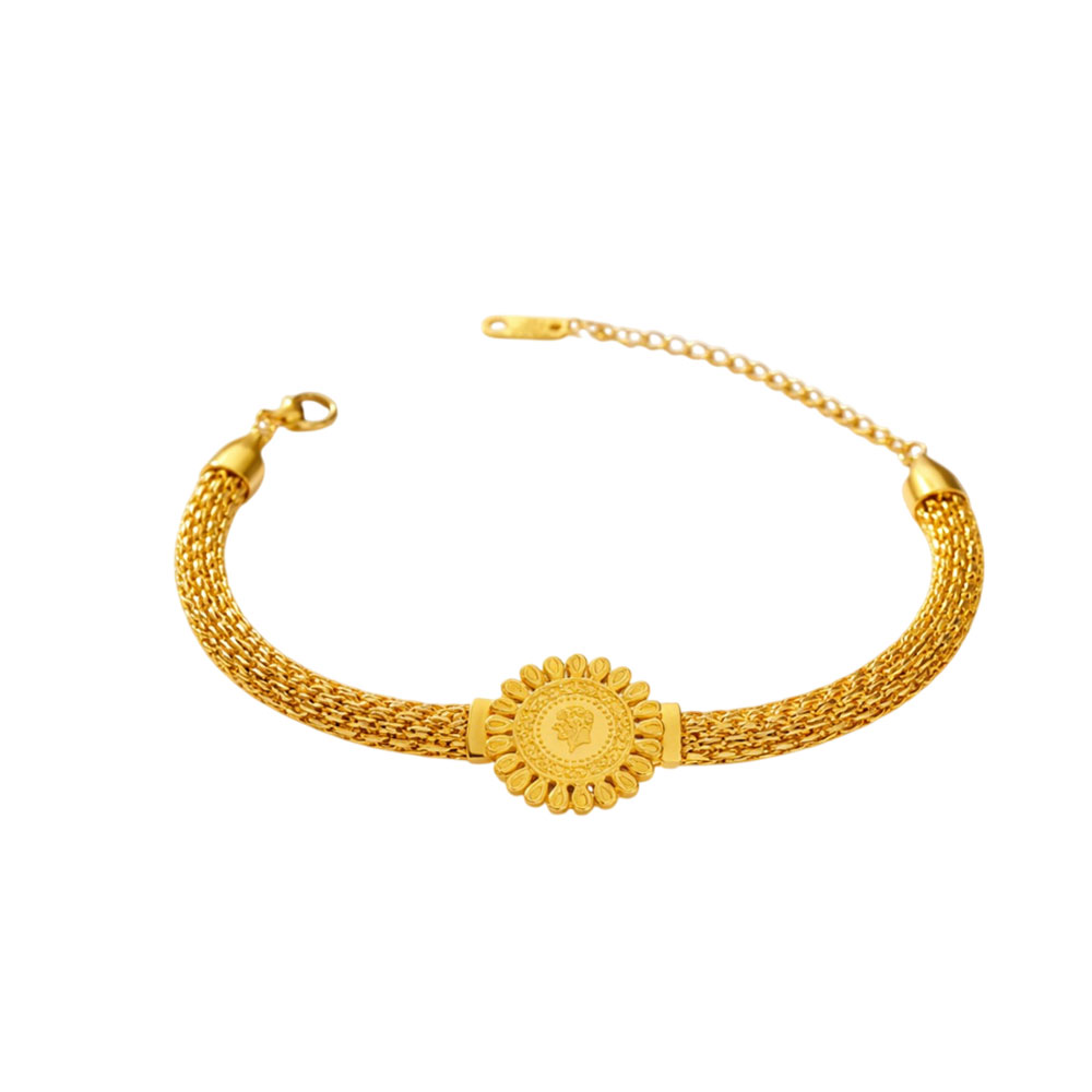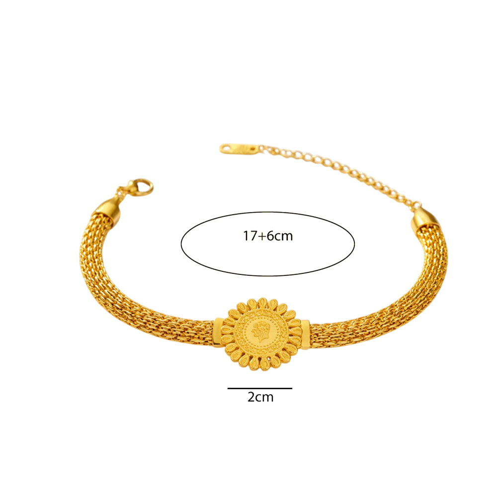 Ατσάλινο βραχιόλι με πολυσειρά αλυσίδα και εντυπωσιακή ανάγλυφη λίρα στο κέντρο. Κλασικό και διαχρονικό σχέδιο που προσθέτει χαρακτήρα και κομψότητα σε κάθε εμφάνιση. Ιδανικό για καθημερινή χρήση αλλά και για ιδιαίτερους συνδυασμούς.