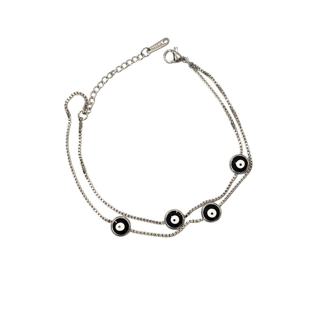 Ατσάλινο Βραχιόλι Με Διπλή Αλυσίδα Ματάκι – Άσπρο