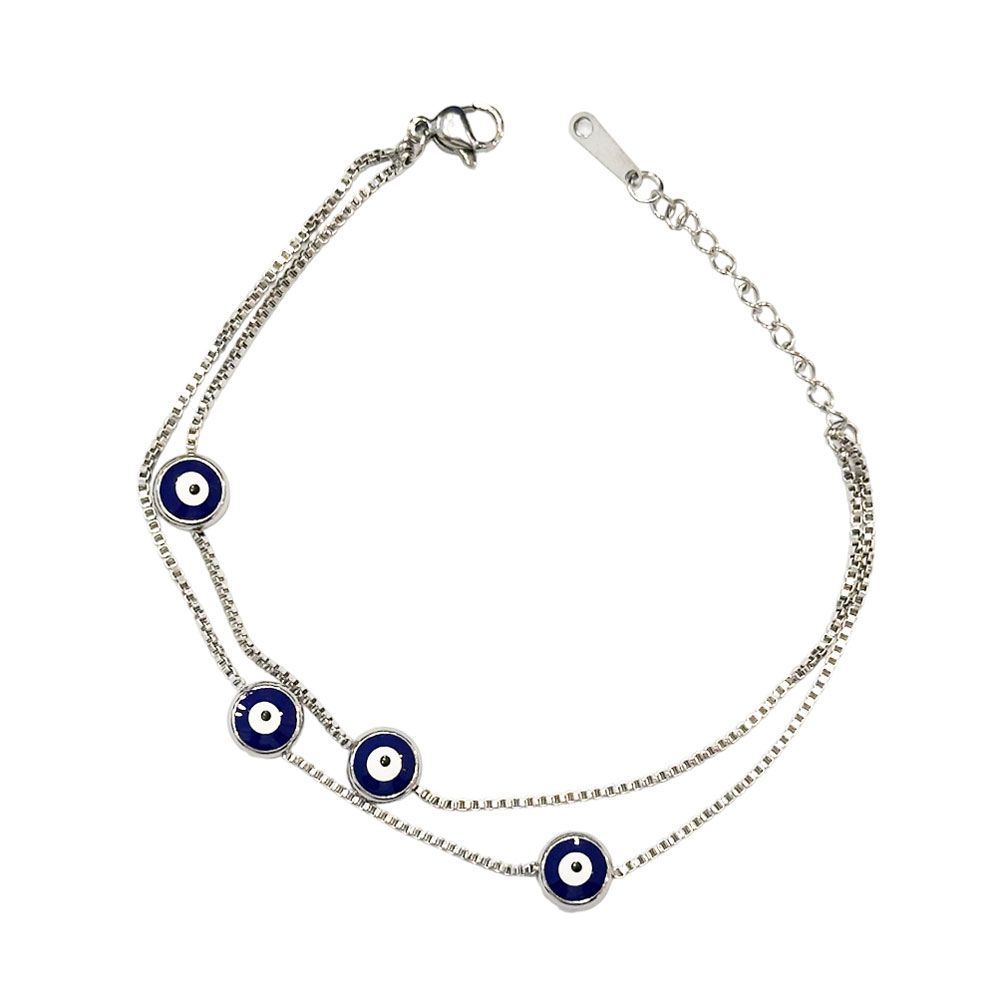 • Ατσάλινο Βραχιόλι Με Διπλή Αλυσίδα Ματάκι - ΜπλεA3216B