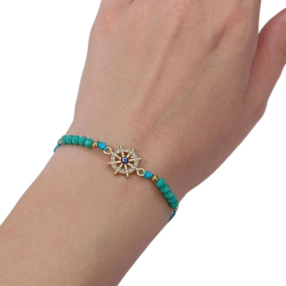 Χειροποίητο βραχιολάκι με ματάκι.Σχέδια όπως τιμόνι, μάτι, και σταυρός.Για τύχη και προστασία.Ρυθμιζόμενο μέγεθος – κατάλληλο για όλες τις ηλικίες.