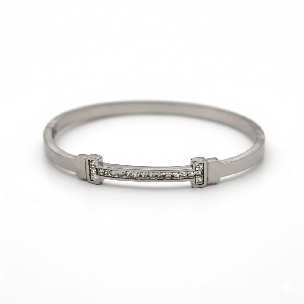 Βραχιόλι Ατσάλινη Μπάρα με Ζιργκόν – Ασημί